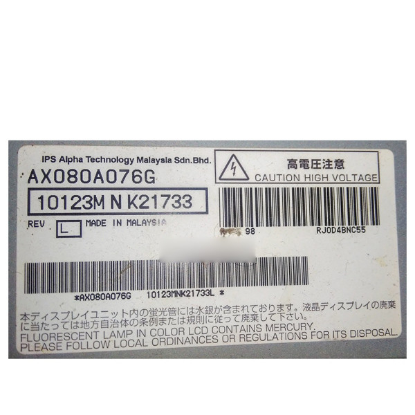 AX080A076G Πίνακας οθόνης LCD Πληροφορίες για το προϊόν: